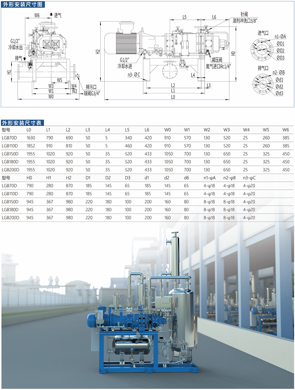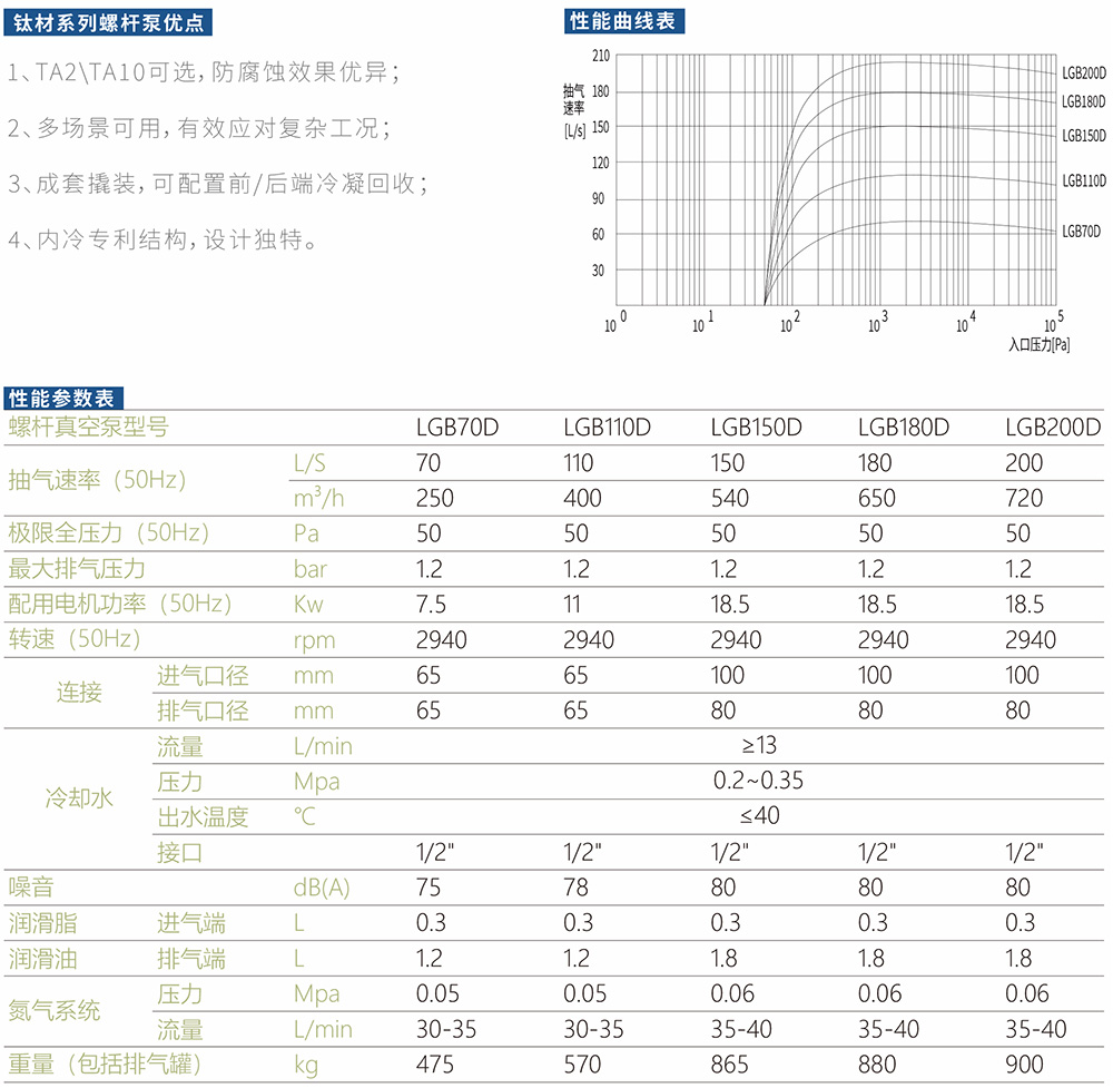 As mechanical tyoe vacuum pump equipped with a pair of constant pitch screws in pump housing, LG series screw vacuum pump canrealize the gas intake and exhaust by the synchronous rolation of the two screws in high speed. The two dynamic balanced screws aresupported by bearings and installed within pump chamber. There are clearances between the two screws and the pump housing, sothe pump operation can be smooth and with a low noise and free of lubricant in the pump chamber. The dry screw pump can be usedto pump the gases that contain a mass of vapor and a small guantily of paricles. lt is also an environmentally friendly andand it is theenergy-saving vacuum pump. Generaly the pump has the advantages in energy conservaion and easy maintenances, updated vacuum pump replacing an oil seal vacuum pump, liquid-ring vacuum pump and reciprocating vacuum pump。